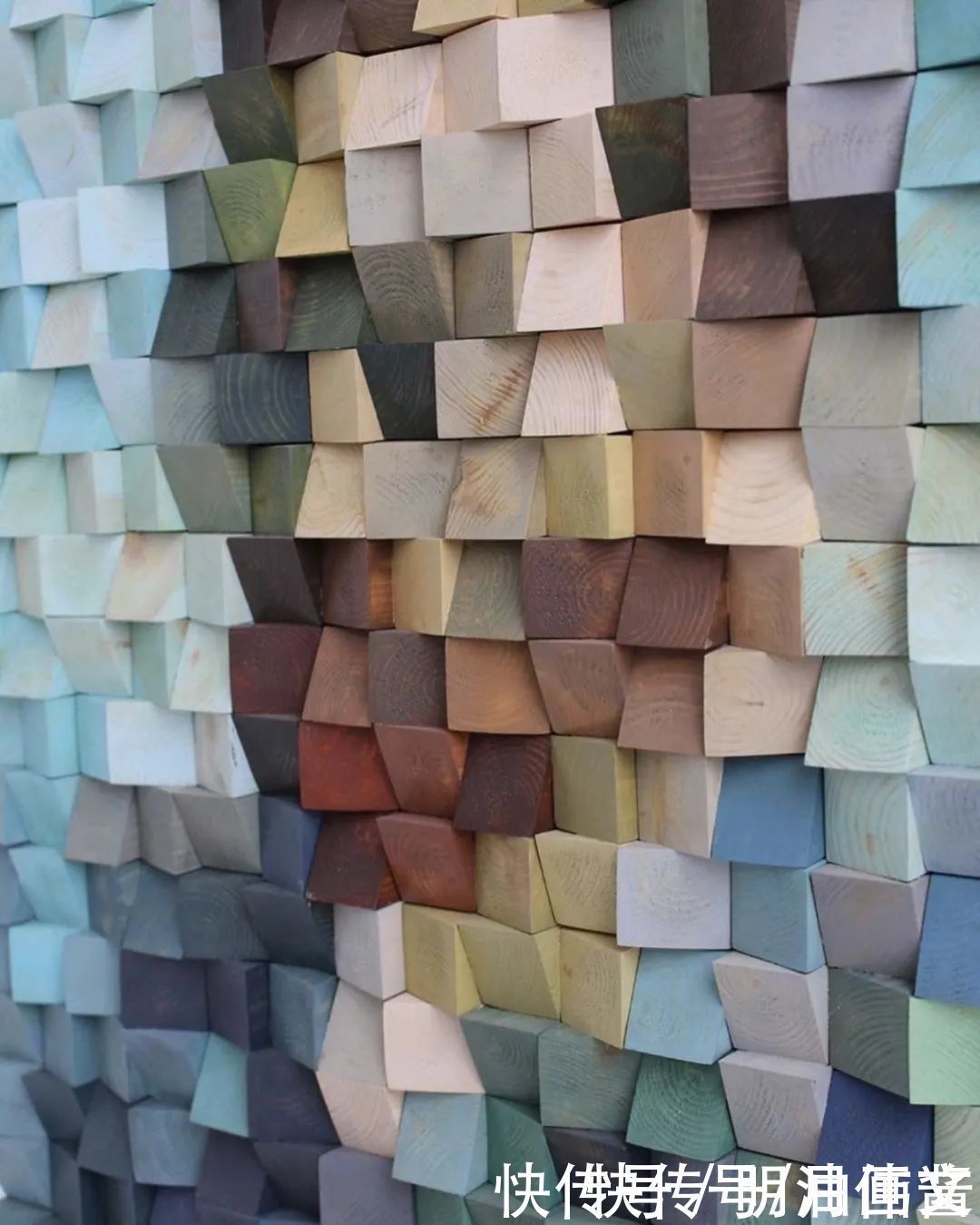 接下来就让我们一起来看看这个由425个木块组成的肖像作品,相信,我们离远一点去看,就会发现,这些木块组成的画面,就是后印象派大师梵高的《自画像》。